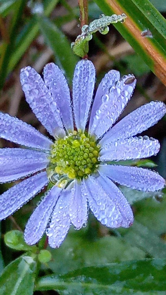 四万十市にあるトンボ公園 池の中のコウホネや睡蓮は冬の長い眠りにつき あぜ道に咲くのはヨメナかノコンギク 花びらに朝露をたたえてたたずんでいました🤗