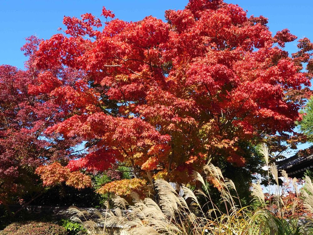 真っ赤なもみじとススキと青空が とても綺麗でした🍁🍁🍁