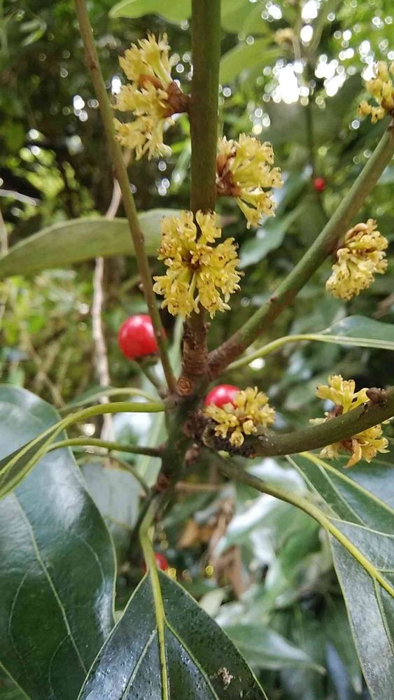 昨年の花が1年かけて赤い実になり、今年のお花と一緒に見れる、お得な木なんですネ😊
