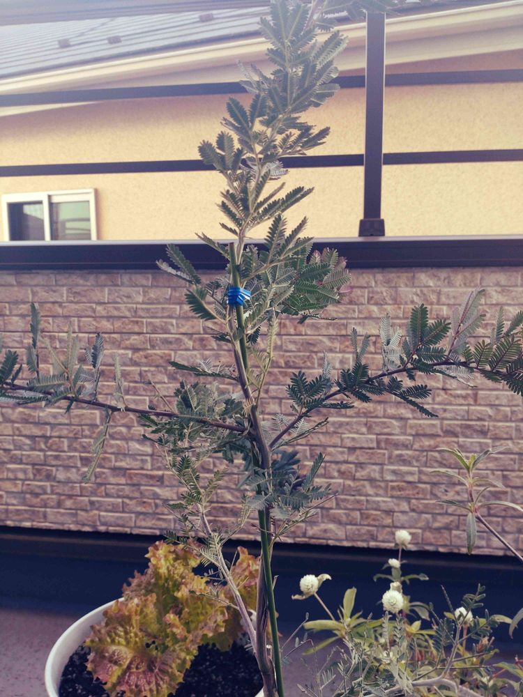 ミモザが欲しくて買ったけど、どこに植えるか決めてないのでとりあえずベランダに。