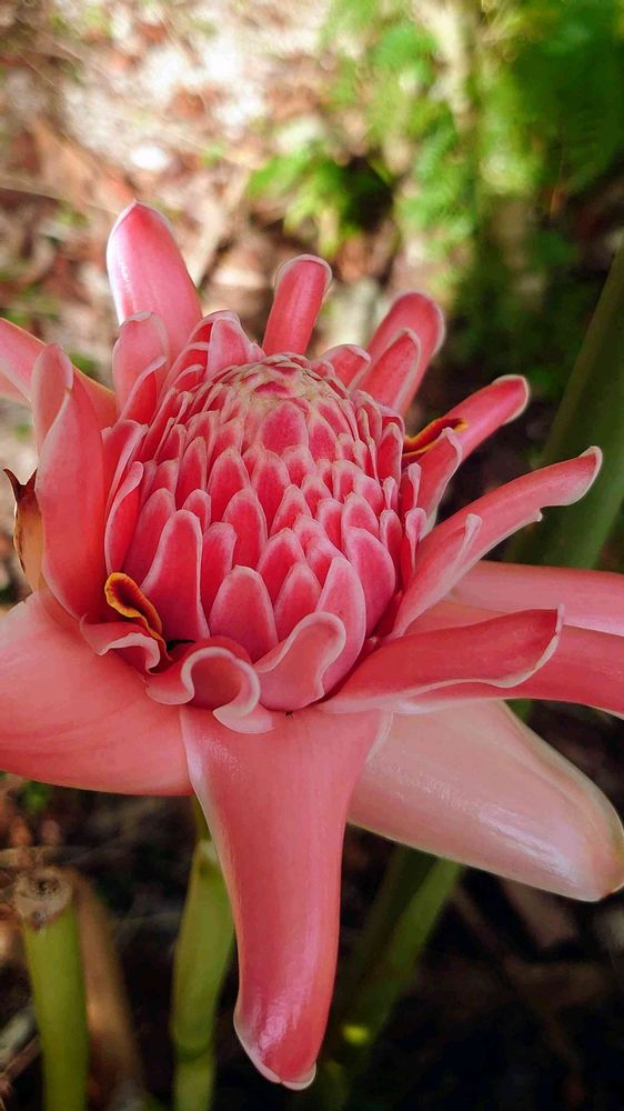 トーチジンジャーの花が好きです。不思議な形と質感。直径15センチぐらいですかね。存在感ずっしりのピンクの大輪。