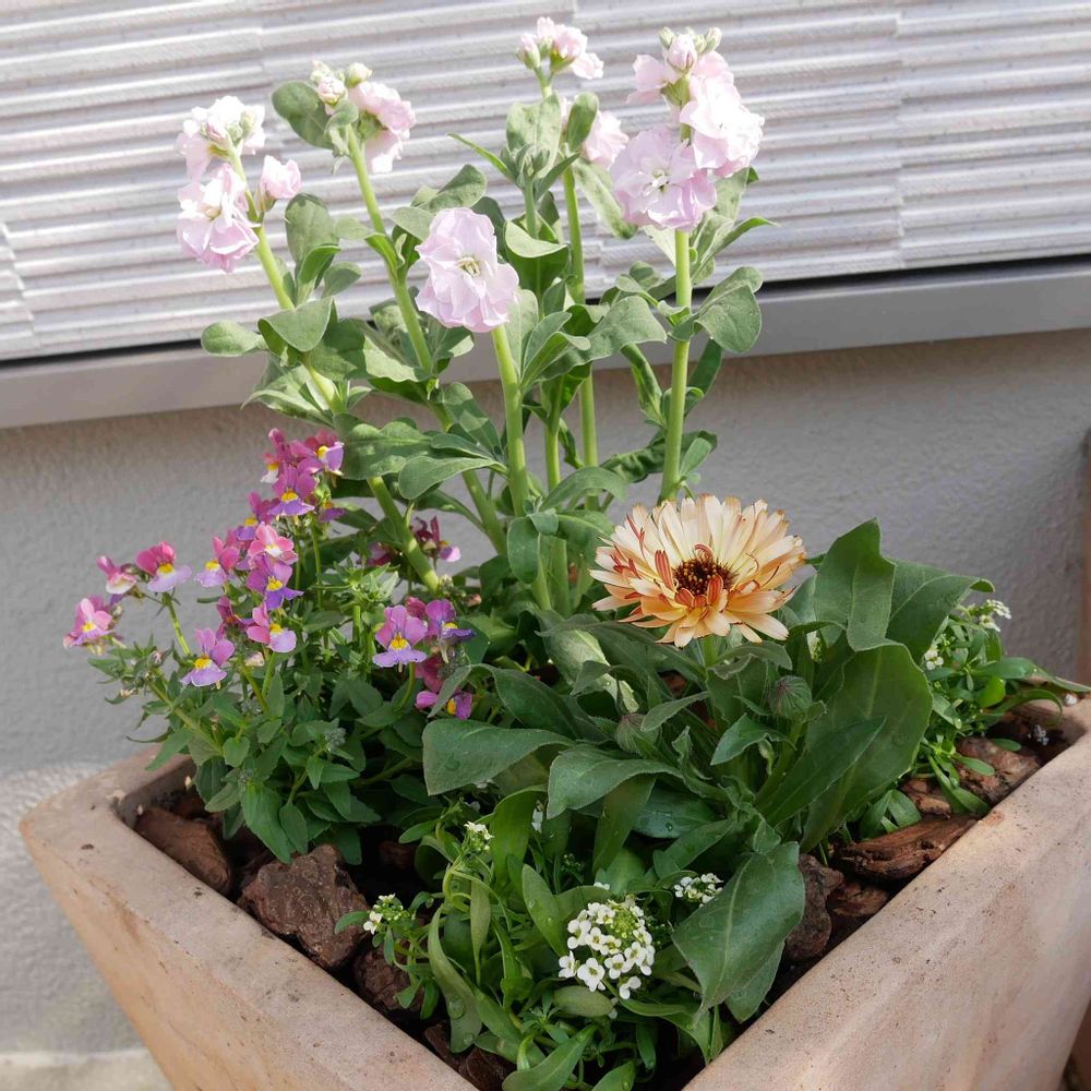 ストック、カレンジュラコーヒークリーム、ネメシアメーテル、スイートアリッサム、