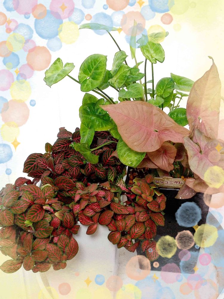 シンゴニウムのピンクとグリーンの寄せ植え、可愛らしい組み合わせになりましたね💗💚