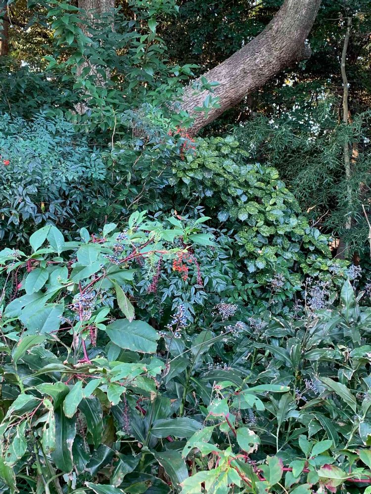 自然に生えた低木や蔓草などが繁茂しています。
