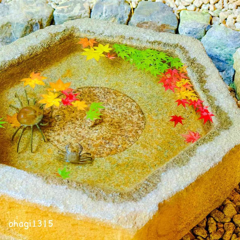 おはぎさん🍁紅葉🍁花手水キレイですね〜😍