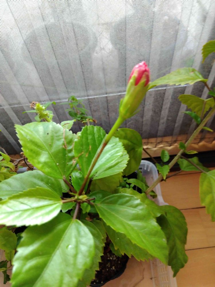 冬越志中のハイビスカス、新たな蕾🌺今季30輪行くか😳