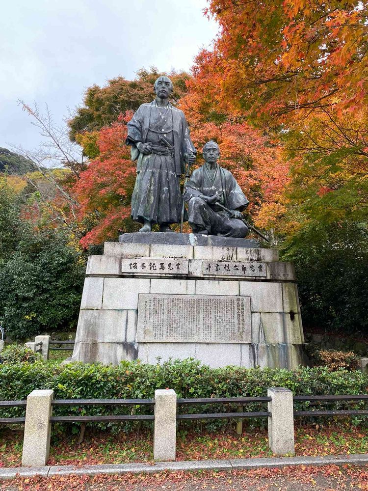 京都祇園円山公園内、坂本龍馬像、中岡慎太郎像。紅葉🍁🍁が綺麗ですね。🤗🤗