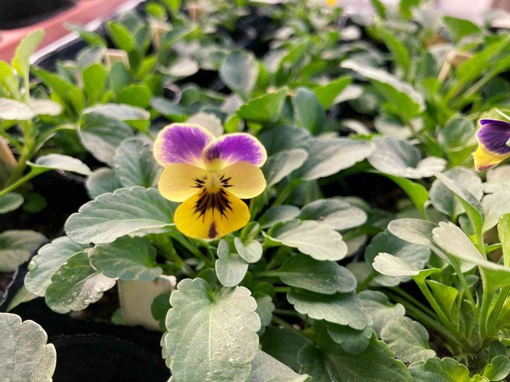 自家採種ビオラ、開花第2号はピンクコアラの種から3つだけ育った子達✨