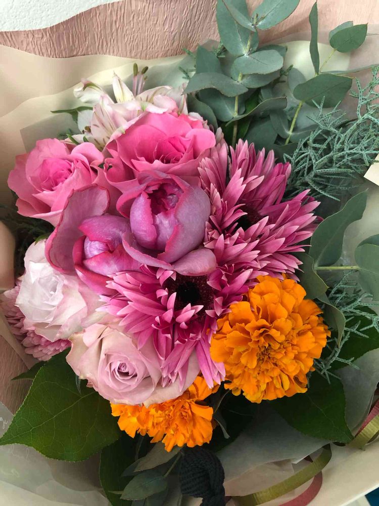 仕事がら、社員さんの依頼でお花屋さんから届いたお花💐を預かったりしますが、今日は支払いも頼まれて…このアレンジ配達してもらって3280円😳