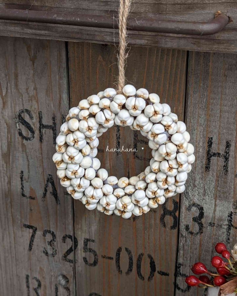 今年はたくさんナンキンハゼが手に入ったので、つぶつぶのリースにしてみました。アップにはせず見て下さいね~😆 つぶが小さくて、グルーが所々見えてしまってます😅
