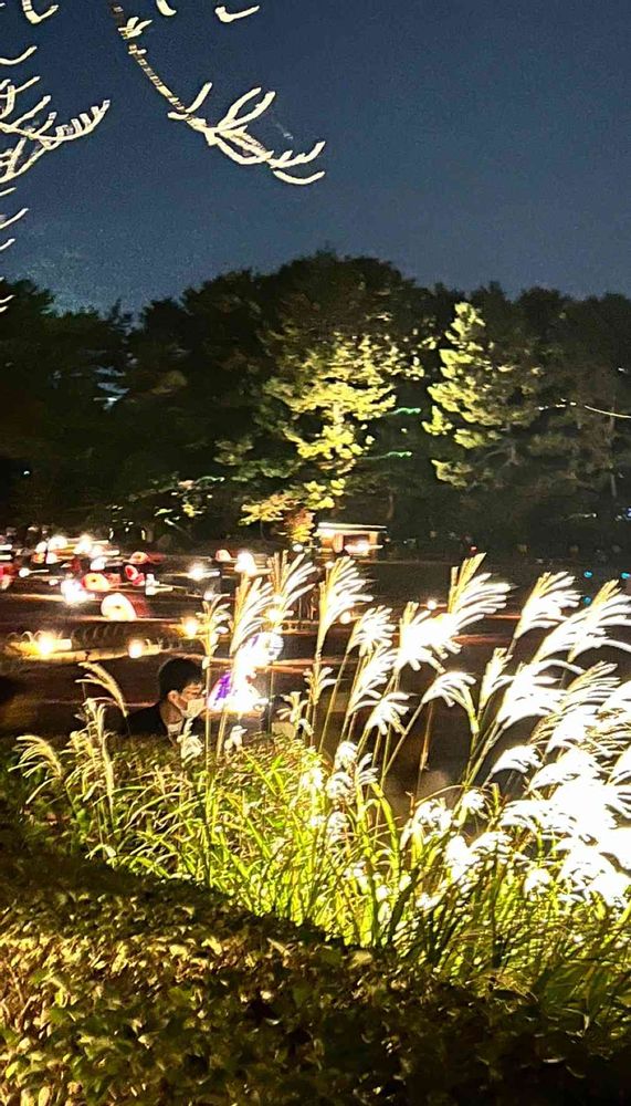ライトアップされたススキが