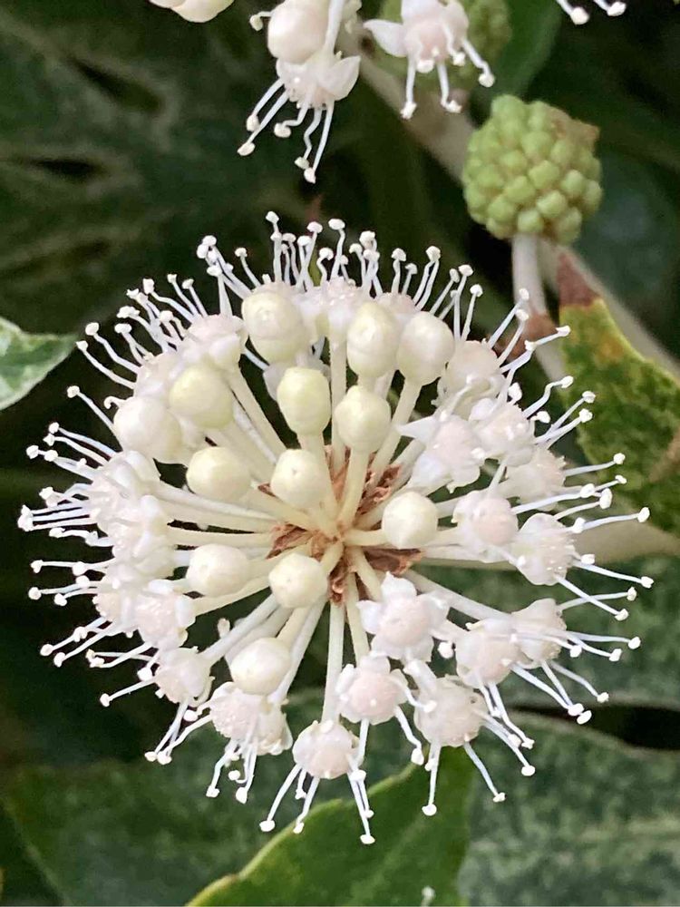 ヤツデの葉っぱ🍀は、大きくて目立ちますが、白いお花は結構見落としがちなんですよね👀