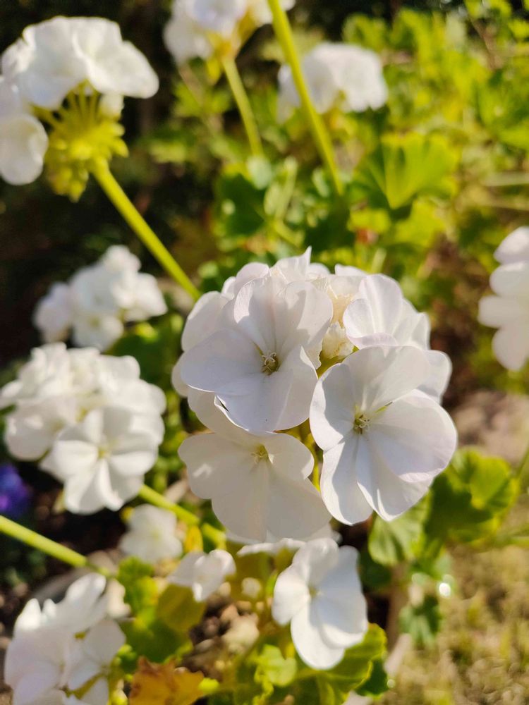 白いゼラニウム、固まってまんまるく咲いて可愛らしいね😍