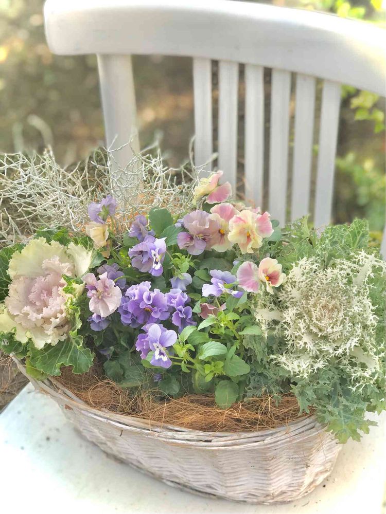 この時季はビオラや葉牡丹などが花屋さんの店先に並んで、あれこれ合わせてみるのが楽しいですねー。素敵と言ってくださって、嬉しい〜。ありがとうございます。(*≧∀≦*)🎶