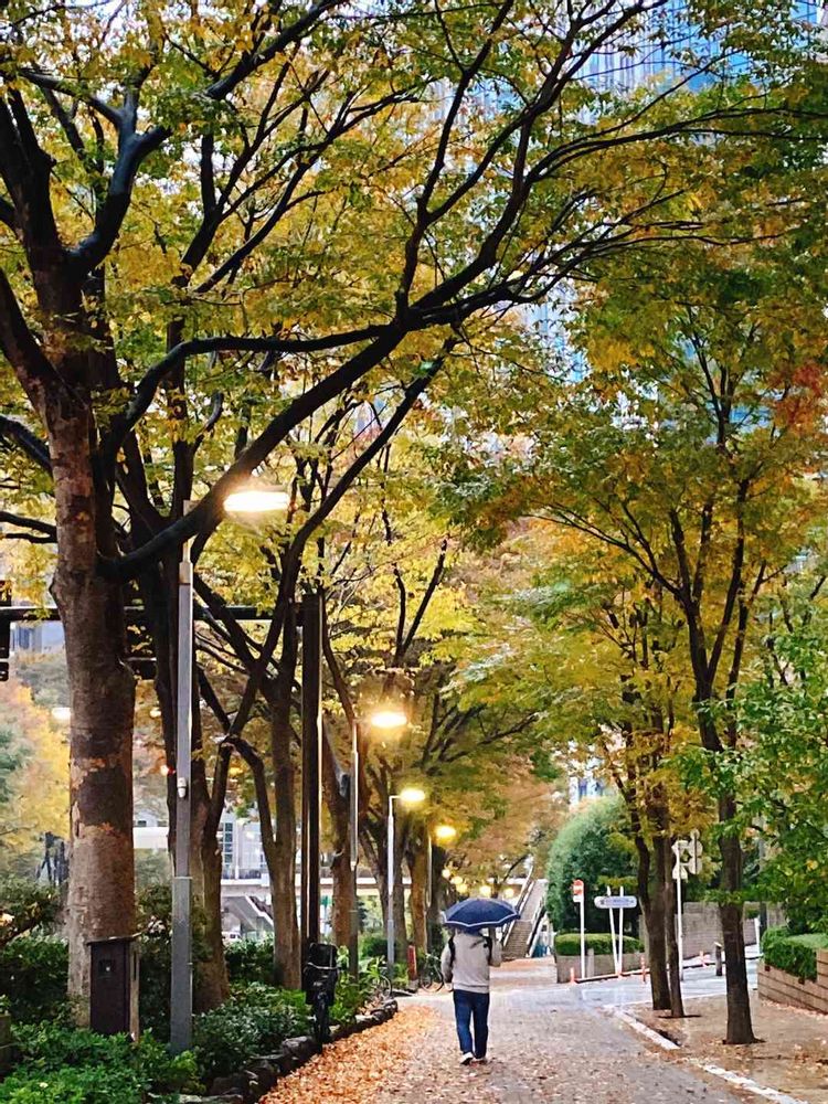 銀杏並木と街灯が、いかにも秋らしい風情を