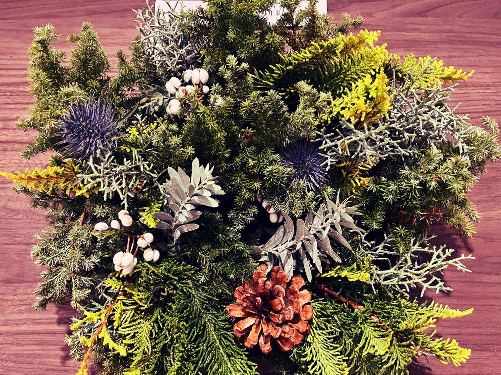 今日は勤務先でイベントがあり、工務店さんとお花屋さんとのタイアップで初めてクリスマスリースを作りました。