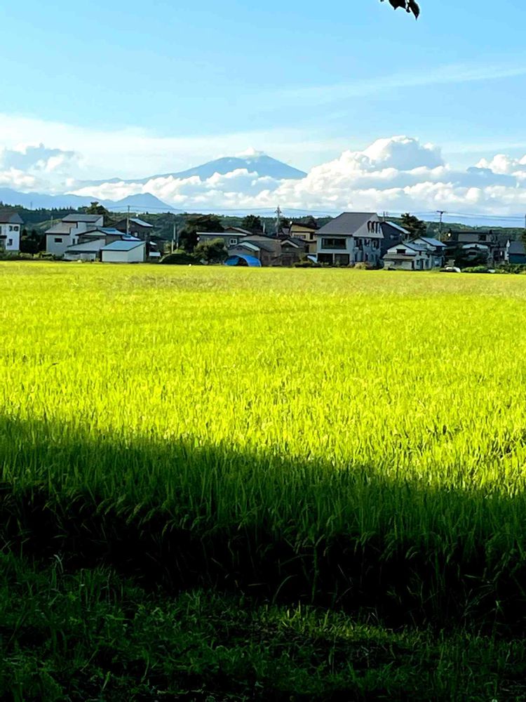 雨上がりに外へ出たら稲穂と雲がきれいで鳥海山も顔出してくれましたね🌾⛰️☁️
