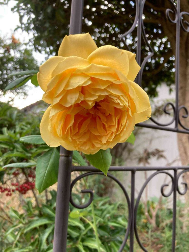 ゴールデンセレブレーションが秋バラを咲かせました。つるバラは秋は花を付けない傾向ですが一つだけ花を付けました。と思ったらグラハムトーマスは3つもツボミをつけてました。