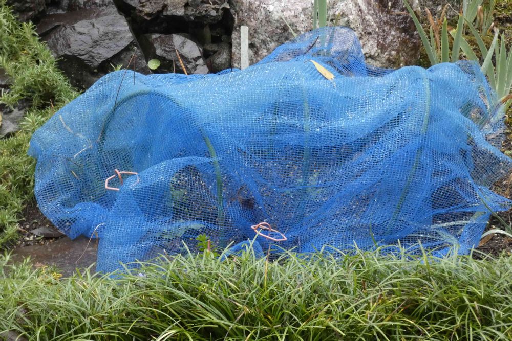 これから朝夕は、マイナス近くまで気温が下がるため、昨年使っていたダイソーの防風ネットを探し被せました。