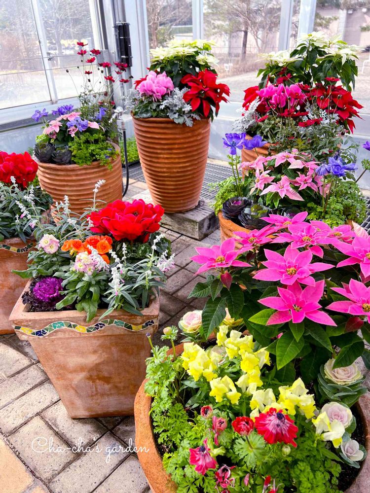 テラコッタに全て植えてあるのは、こだわりを感じますね