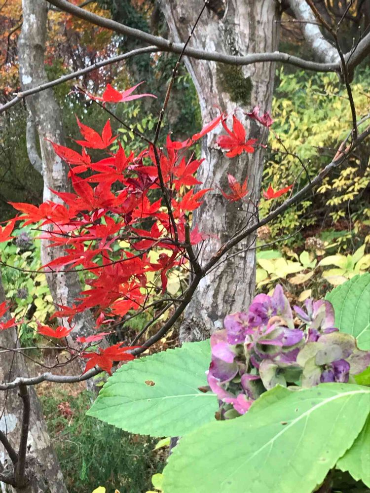 紅葉🍁もみじも然ることながら、紫陽花も良い色合いですね🎵 素敵な写真です😌💓