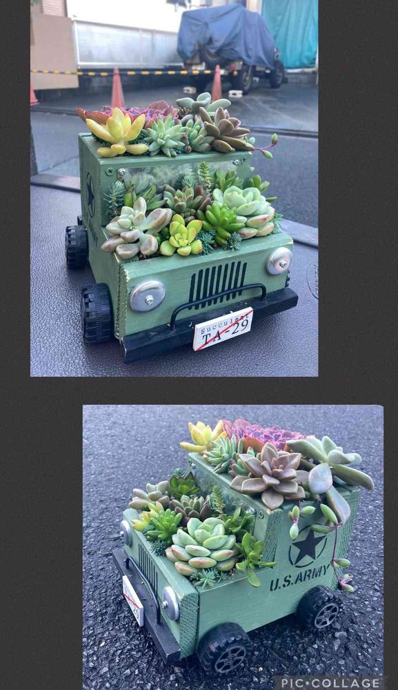 6月に私がフォローしているBambiさんから購入させていただいた、ハンドメイドの木箱のジープ鉢。