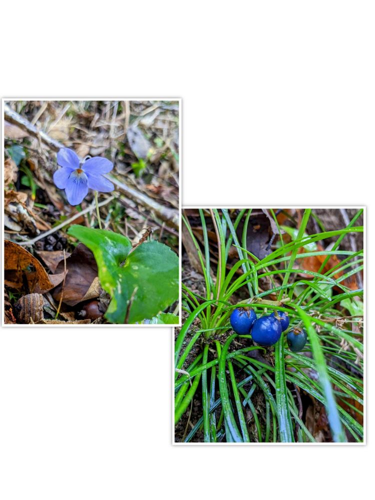 薄紫色のタチツボスミレ?とラピスラズリ色のジャノヒゲがキラリ✨綺麗でした💜