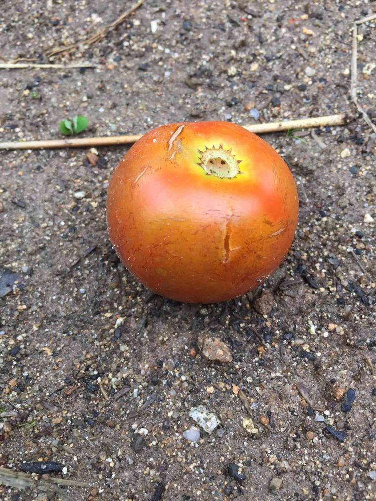 トマトが!!!雨が多すぎてパンパンになって弾けてキズだらけ…で、熟す前に落ちちゃった( ºωº )チーン…