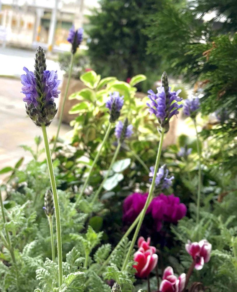 定期的に花を植え替えられ、今はシクラメンやラベンダーで楽しませてくれます😊