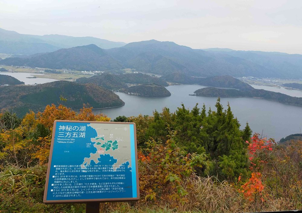 海に見える湖ですよね。右側に目をやると若狭湾が見えますよ。
