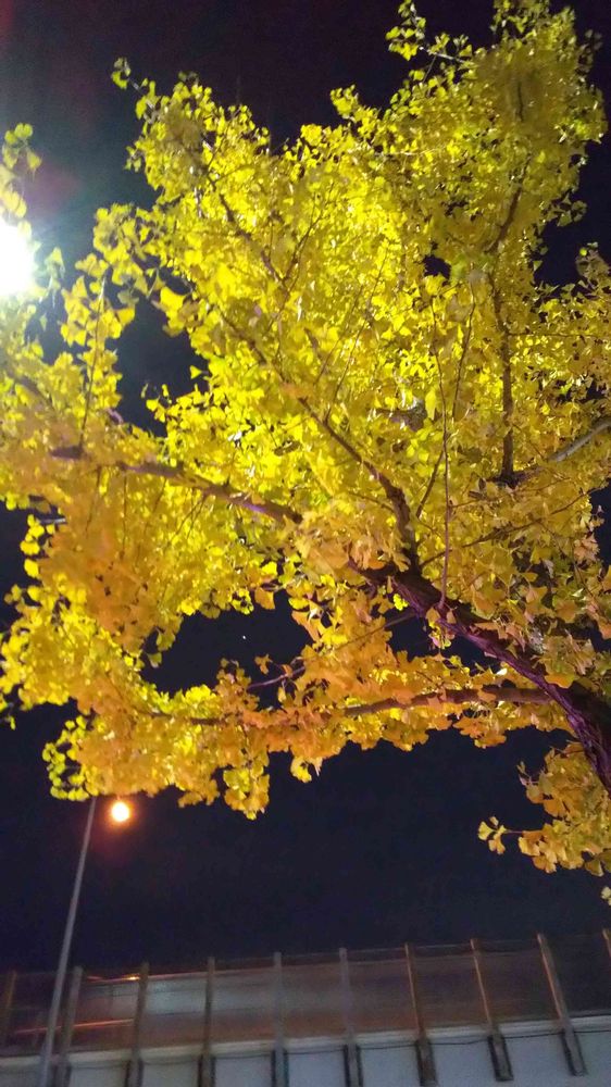 花みずきさんの外苑イチョウ並木に刺激されて、夜のイチョウにチャレンジしました。😊😄🤭🤗🏮🍢🍶🌌👌🌟