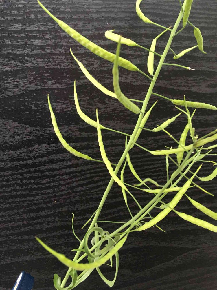 ミズナの種(が中に入ってる?)このまま枯れるまで待った方がとも思いましたが、中々枯れないし、別のもの植えたいし、アブラムシさんが狙ってたのでこれだけ確保。枯れたら種取り出せるかな?
