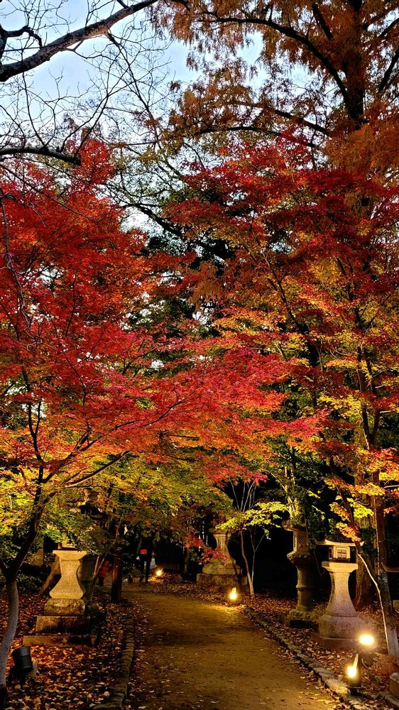 用事を済ませて京都の北野天満宮⛩️で紅葉🍁のライトアップをしてたので寄ってみました 思いのほか広くて綺麗な紅葉🍁にうっとりでした