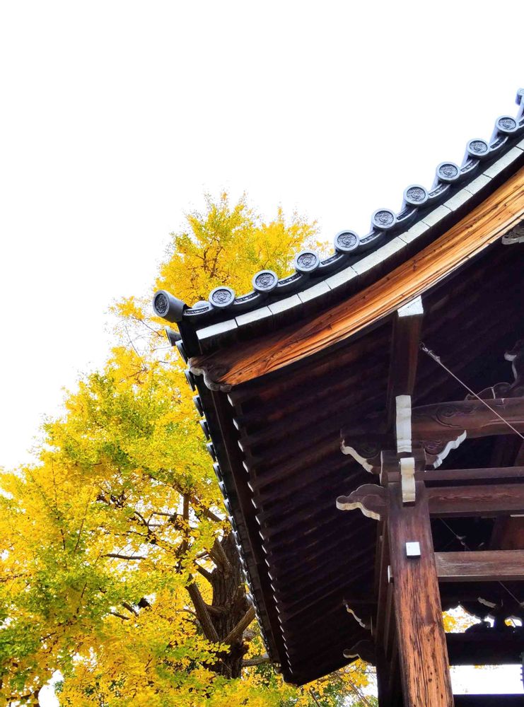 お寺の鐘楼とイチョウ