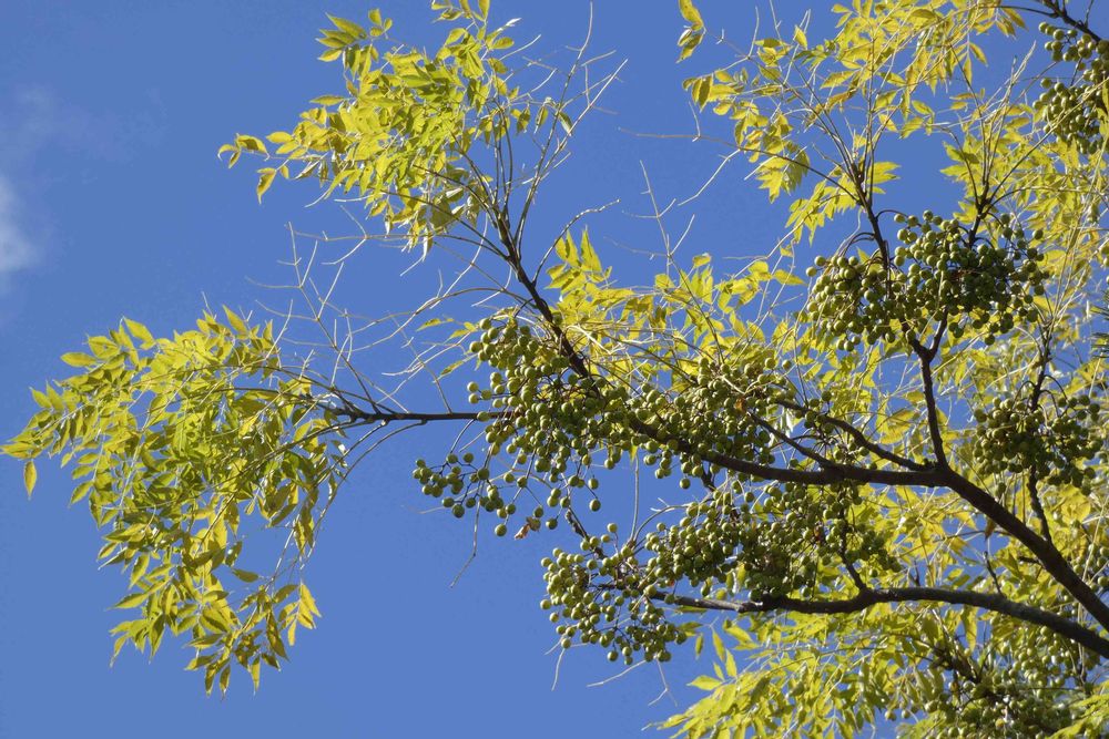 ご近所さんの大木。小さな実がぎっしり実って、秋風に揺れています。
