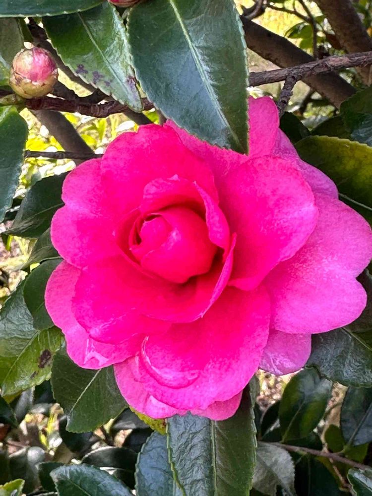 小さな目印に「シシガシラ」と管理No.が記されている。サザンカかなぁと思っていたが、初めて知ったシシガシラ(獅子頭)という花❗️