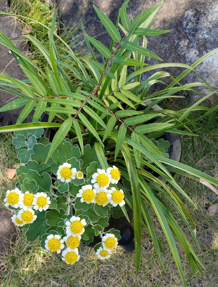 なんか葉っぱに白い縁取りがあって、、イソギクっぽいね!花はやっぱり菊だね〜🌼
