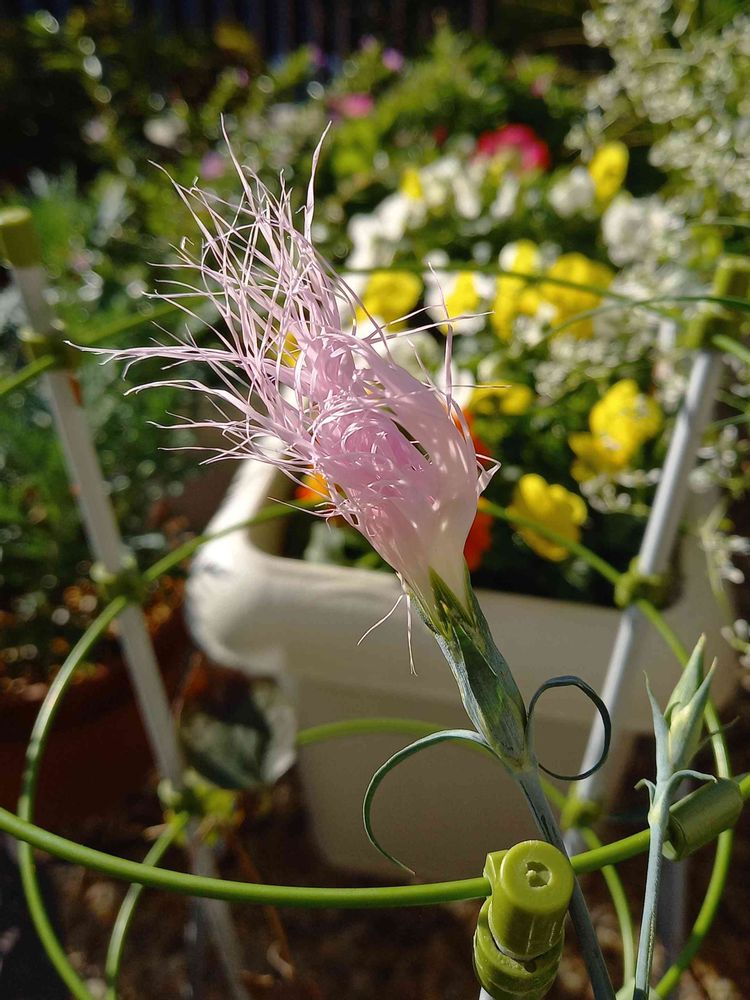 昨日、新聞集金人の方が、夜顔とこの伊勢撫子を見て、『◯◯さん、変わった花が多いですね。』と一言。