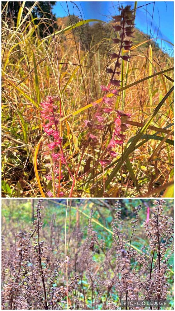 ちょっと色づいたような「イヌコウジュ」の枯れたのがありました。結構群生するので、山ではよく見かける風景ですね。綺麗に揃った萼片がよく見えます。