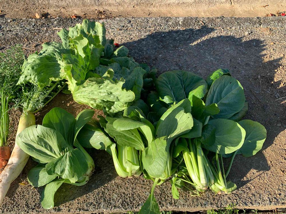 今朝は青梗菜と小松菜の初物収穫しました。まだ食べてないですがレタス、白菜同様に美味そうです😋