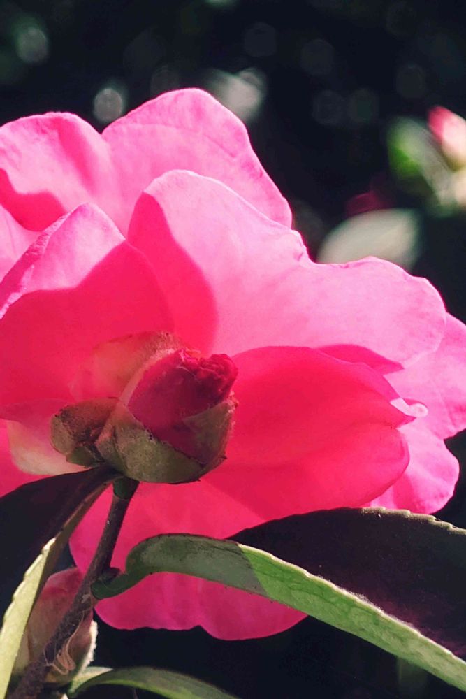 蕾がぷっくりして、その後ろには蕾を見守るように咲くサザンカ🌸