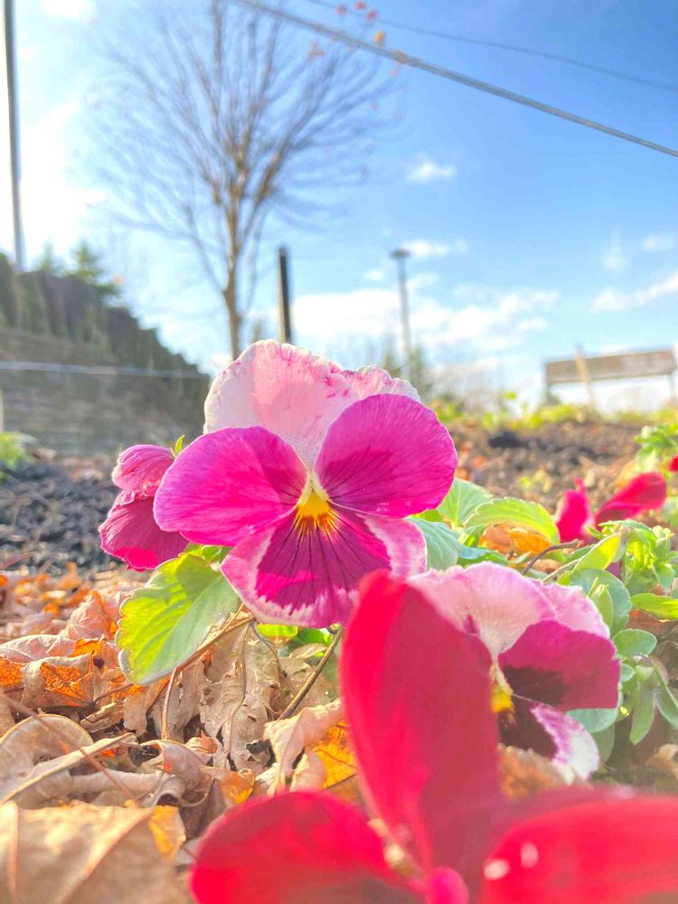 函館にある「道南四季の杜公園」に、何とかまだ残っててくれたパンジー🌸中心部から車で15分くらいのところにある広大な公園です🌲陽射しがあったかかった☀️✨