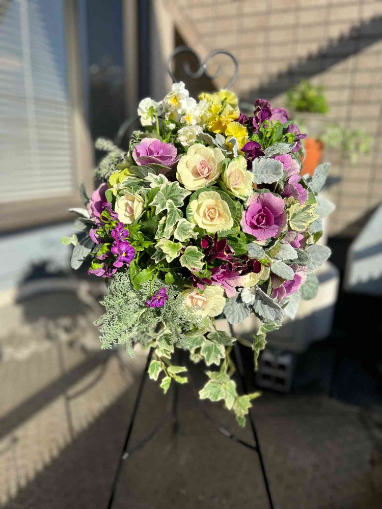 葉牡丹のハンギングバスケット