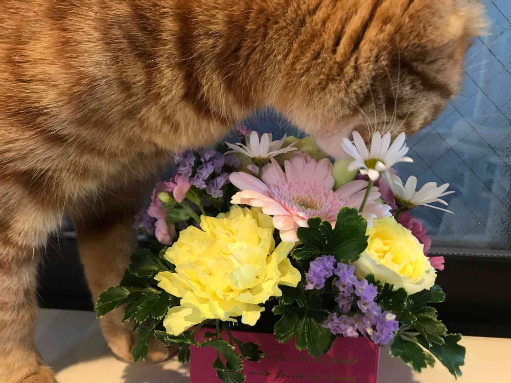そう、猫ちゃんはお花にちょっかい出すのよね〜