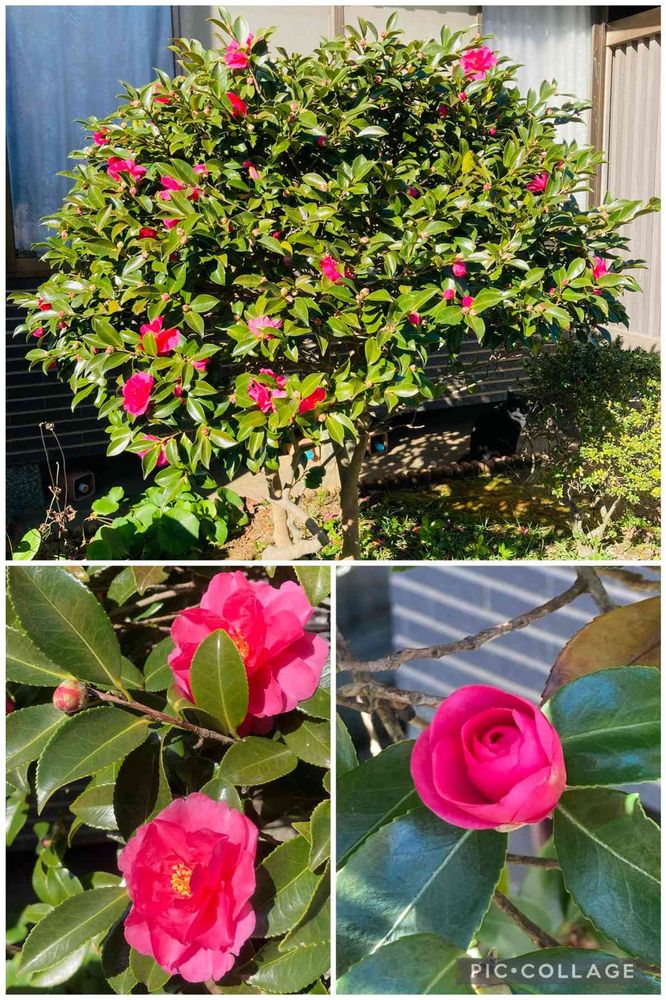 前庭のサザンカは鮮やかなピンクです💗