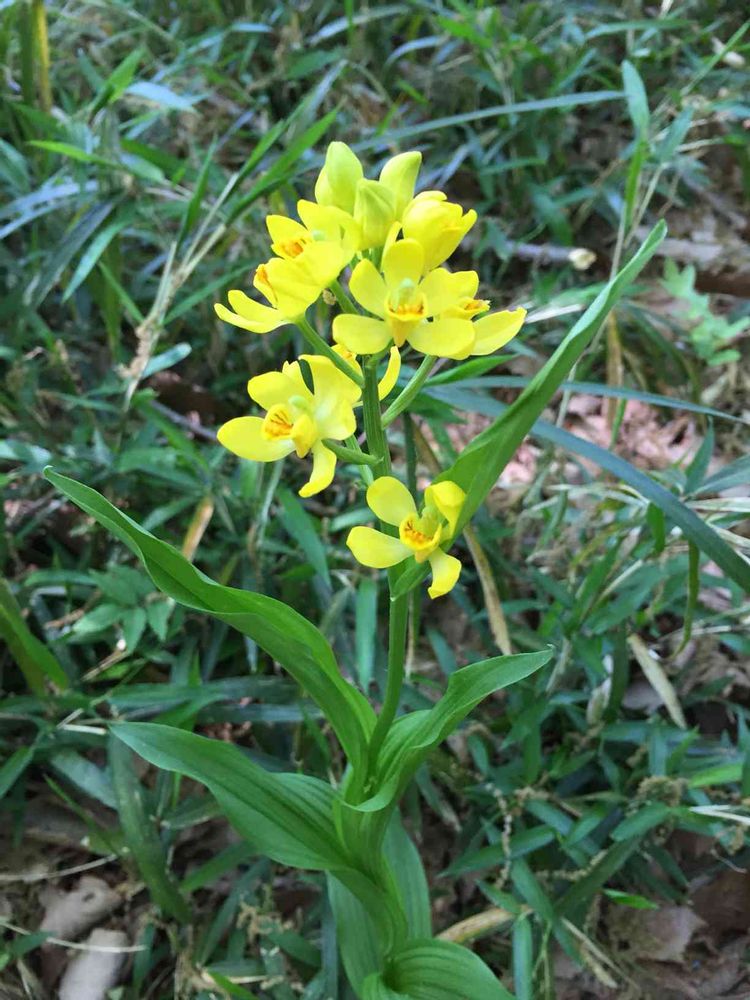 キンラン。きれいで目立つ花です。絶滅危惧種なので、とられないように祈るばかりです。来年も咲くといいな。