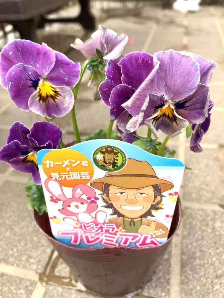 新幹線&2泊で行ったので色々持ち帰るのは難しく、このカーメン君と見元園芸のコラボビオラだけ購入してきました。
