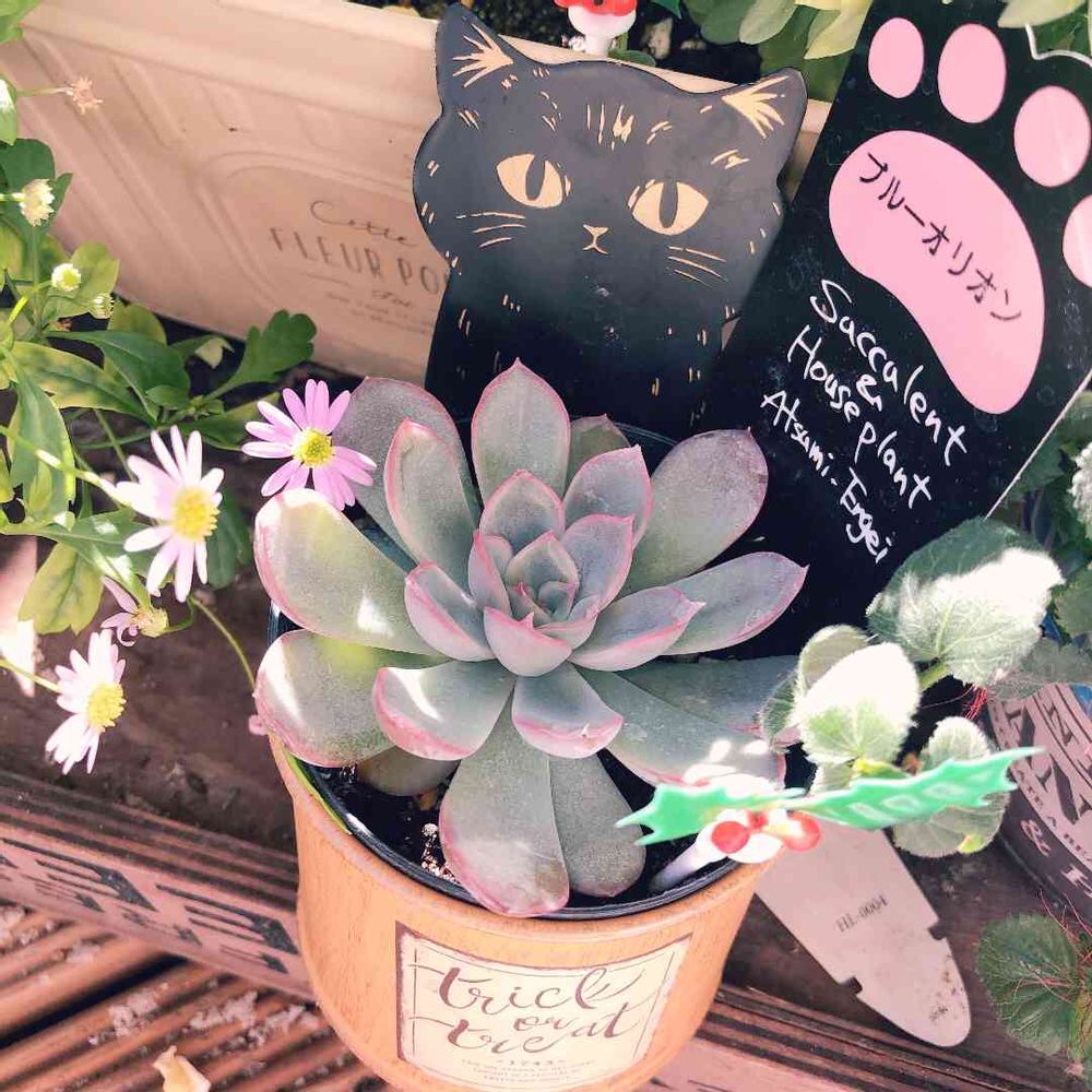 全然多肉に詳しくないのでかなり直感でチョイスしました。なんか家にあった猫の鉢に入れてみてしっくりくるなぁと思ったらタグが猫の🐾だった。お花とか咲いたりするのかな、しないかな。