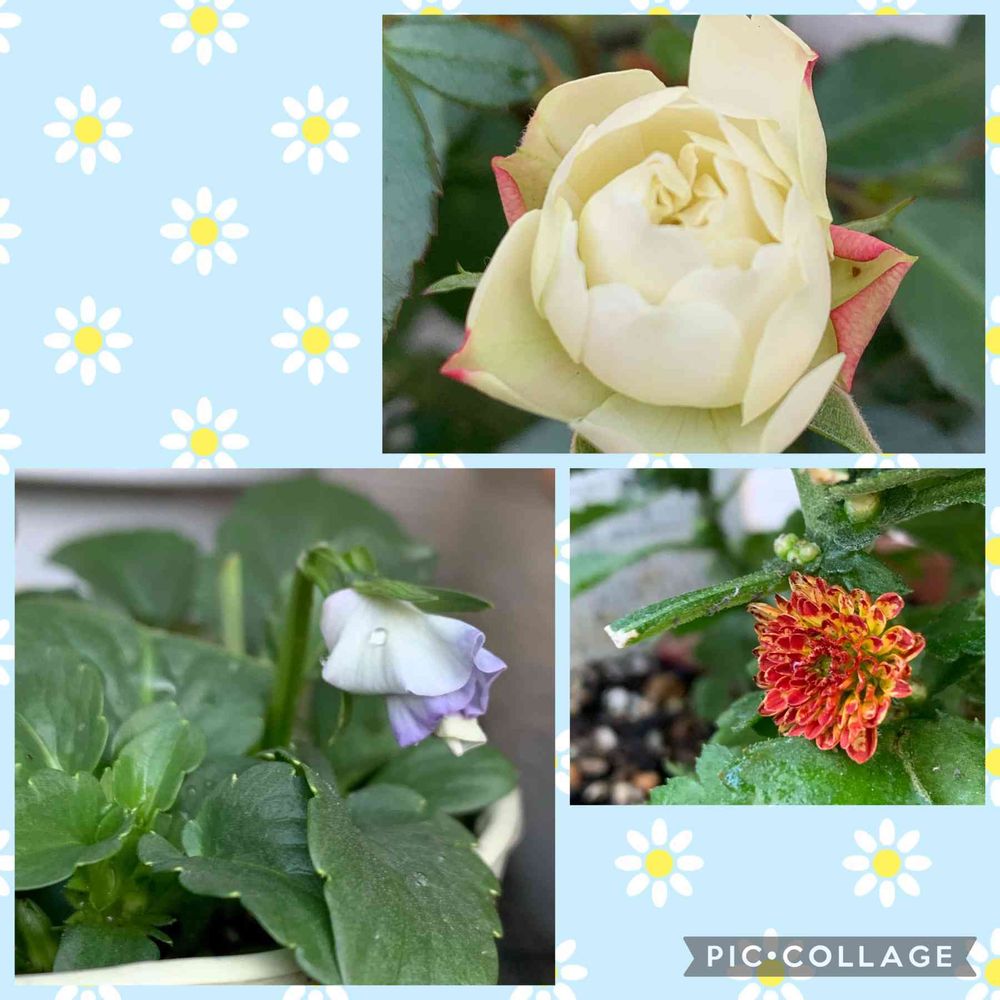 ↘️サカタのタネで、見切り品だったキク。根元から3センチのところで咲き始めてます💕他の蕾も開きそう🤗