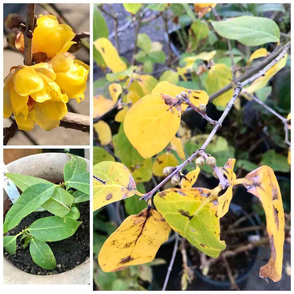 今年の初めに咲いたロウバイ(左上)に実がなり、
